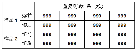 在無損狀態(tài)下測試樣品質(zhì)量、金含量、密度等參數(shù),然后將樣品熔融,再次測試相同參數(shù),通過對(duì)比熔融前后的數(shù)據(jù)變化,判斷樣品是否附著在有機(jī)材質(zhì)基底上。
